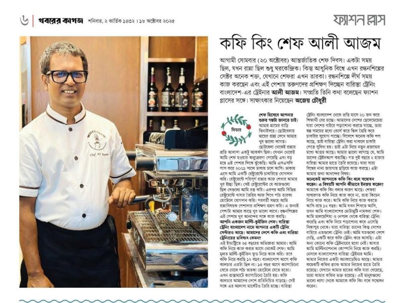 Full-page feature celebrating International Chef Day. Covers career journey and contributions to Bangladesh coffee culture.